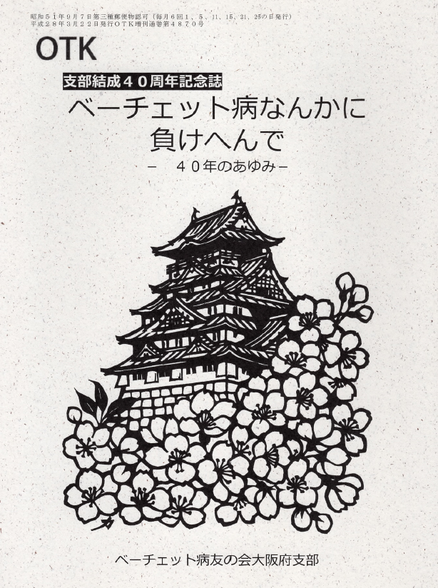 編集ベーチェット病友の会大阪府支部問い合わせベーチェット病友の会大阪府支部電話:090-3272-7088大阪府支部の40周年記念誌 1冊500円+送料