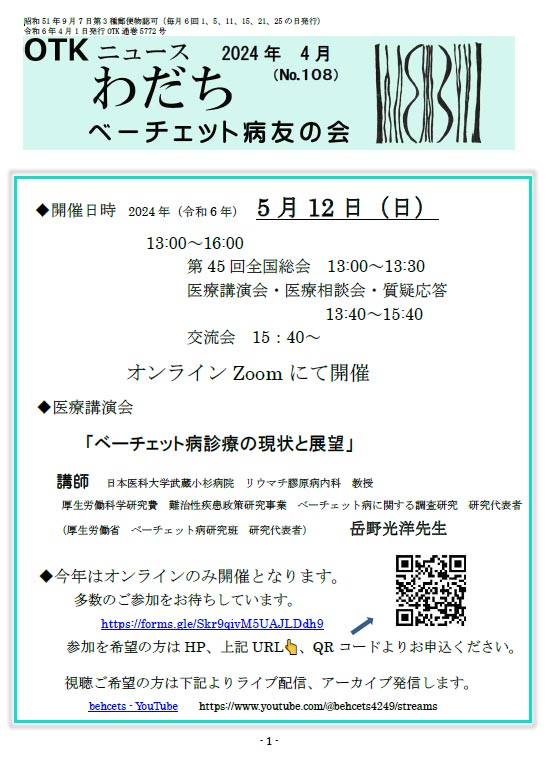 ( 厚生労働 省 ベーチェット病研究班 研究代表者) 岳野光洋先生